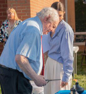 Holocaust Survivor Roger Loria lights his torch.