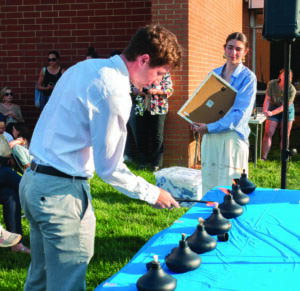 Cady Bunce speaks before lighting a torch.