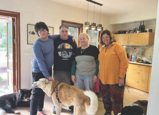 Nancy with her friend Neta, who was in Richmond a number of years ago on a teacher delegation. She teaches English at a democratic school (Gevul) in Hadera. Also in the photo are Neta's husband and son at their home in Netanya.