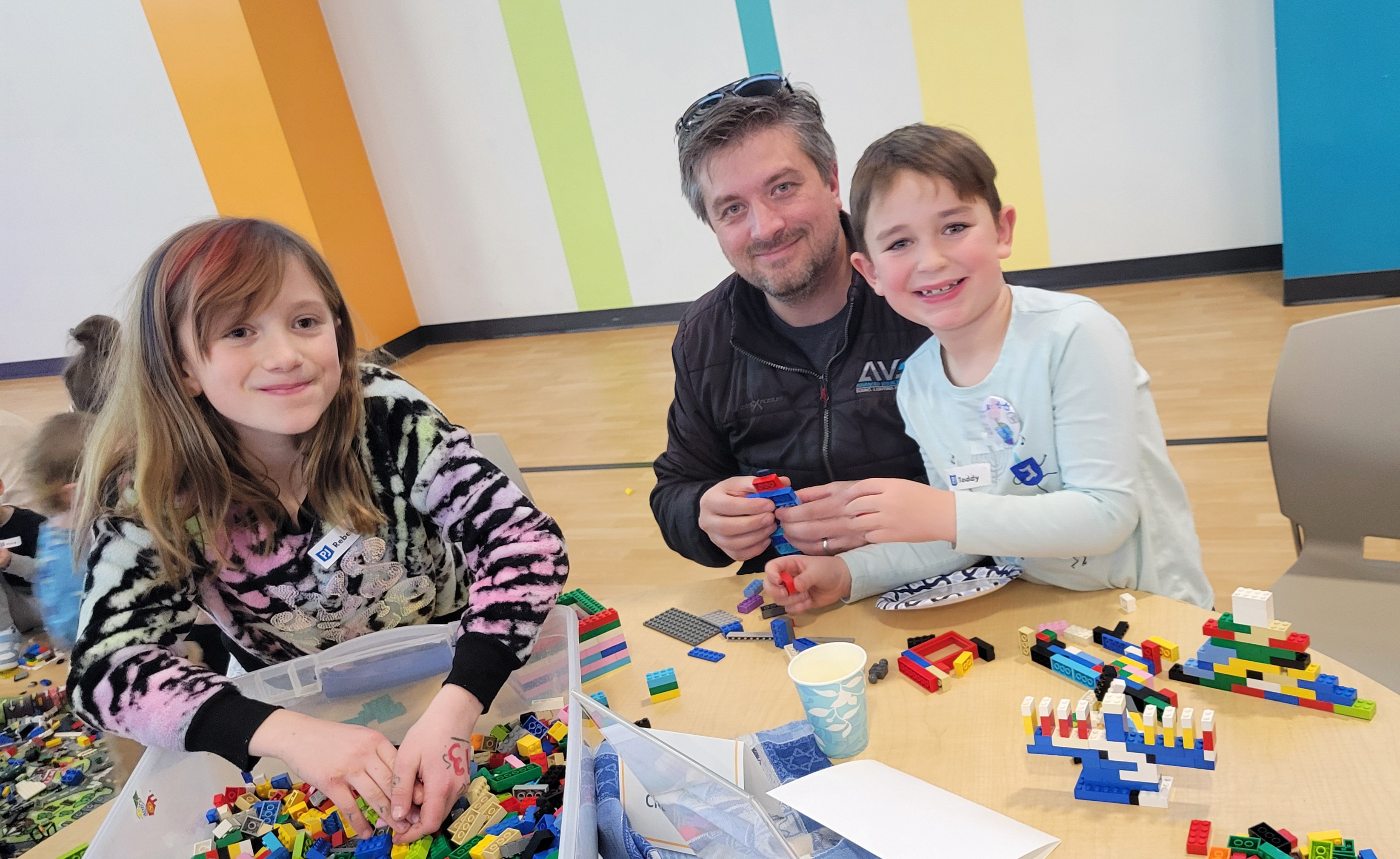 Local sponsor Bricks4Kidz set up several great hands-on building activities, including a collaborative Menorah mosaic, a take-home dreidel build, and a very popular free play floor area.