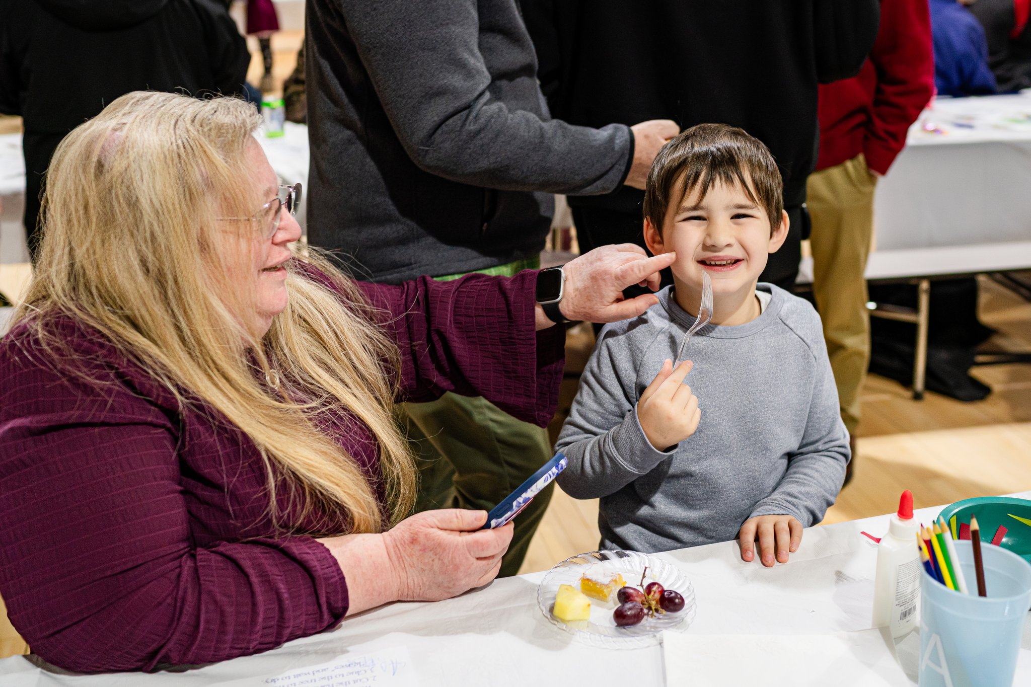 After the performance, students and their grandparents and special friends gathered in the gymnasium for hands-on craft and mosaic projects. Around every table, generations sat side by side, creating together and sharing stories along the way.