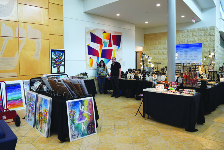 Throughout the week, Goldie and her husband, Moshe Monzon, displayed and sold their beautiful artwork in the Richard A. Arenstein Lobby. Their pieces—ranging from microcalligraphy and lithographs to jewelry and Judaica—reflected deep cultural and spiritual meaning.