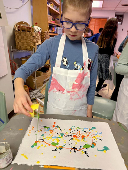 Fifth grader Rachelli Aronowitz created a meditative work on handmade recycled paper embedded with seeds, reflecting both Rothko’s depth and a personal spiritual journey.