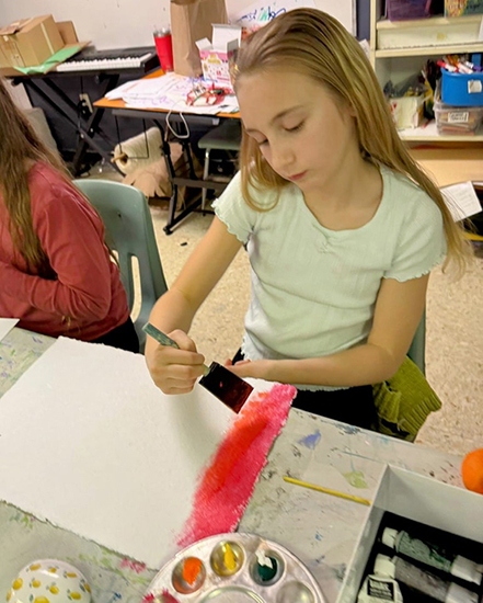 Inspired by a 2024 trip to the Virginia Museum of Fine Arts, students in grades 1–5 explored the fluid, color-soaked forms of Helen Frankenthaler. Their watercolor abstractions embrace spontaneity, channeling the freedom of gesture and emotional resonance.