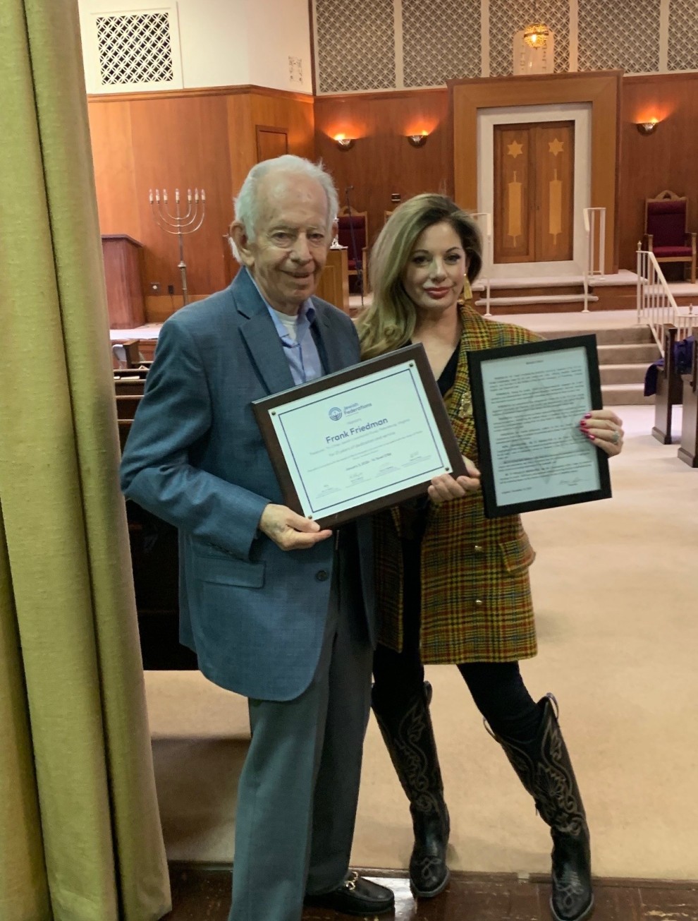 In January, Congregation B'rith Achim honored long-time member Frank Friedman for his tireless dedication and contributions to the synagogue and the larger Jewish community.