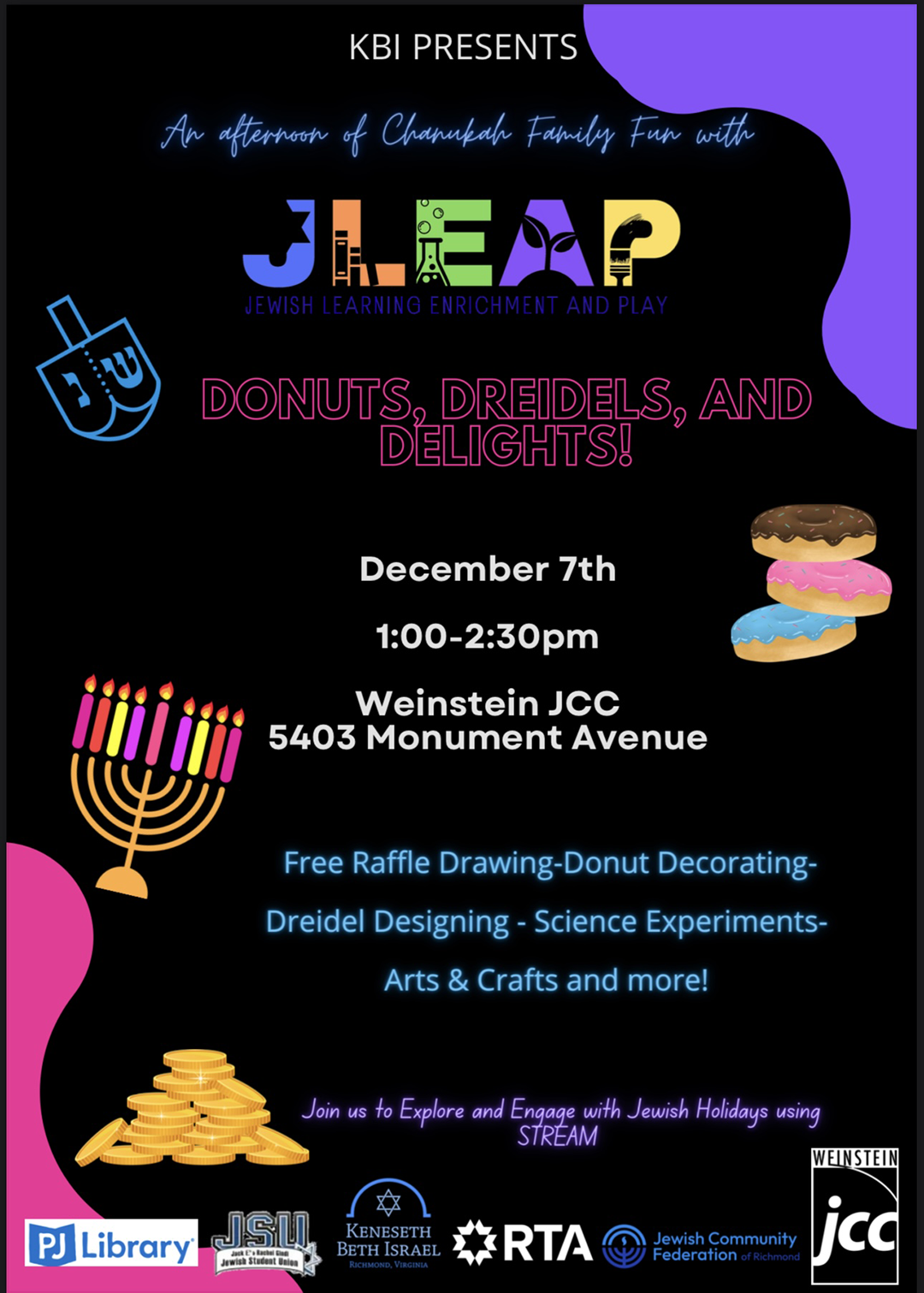Join us for an afternoon filled with fun, family activities, delicious treats, and hands-on Chanukah excitement!