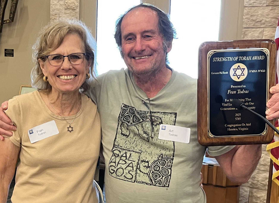 Fran Todras who was presented the “Strength of Torah” award from her husband Art Todras