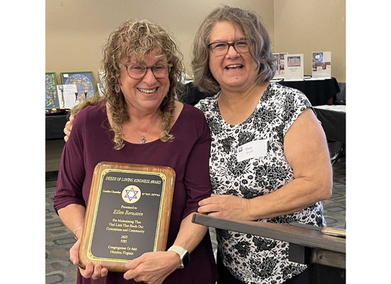 Ellen Bernstein who received the “Deeds of Loving Kindness” award from presenter Deb Wolff