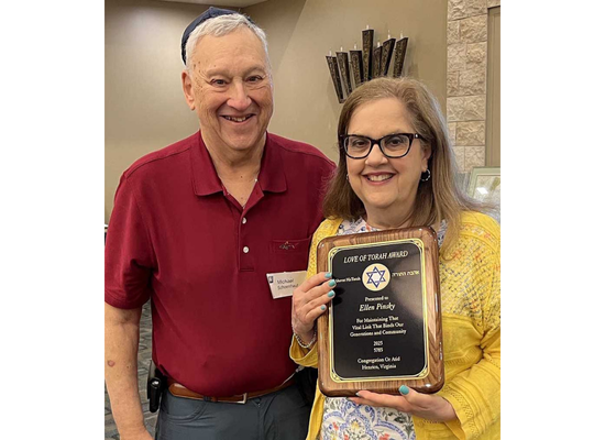 Ellen Pinsky who was presented the “Love of Torah” award by Michael Schoenhaut